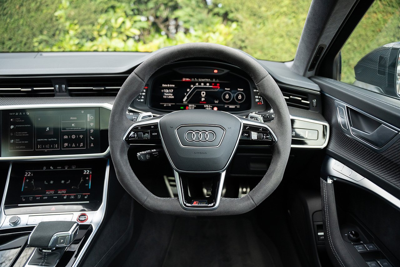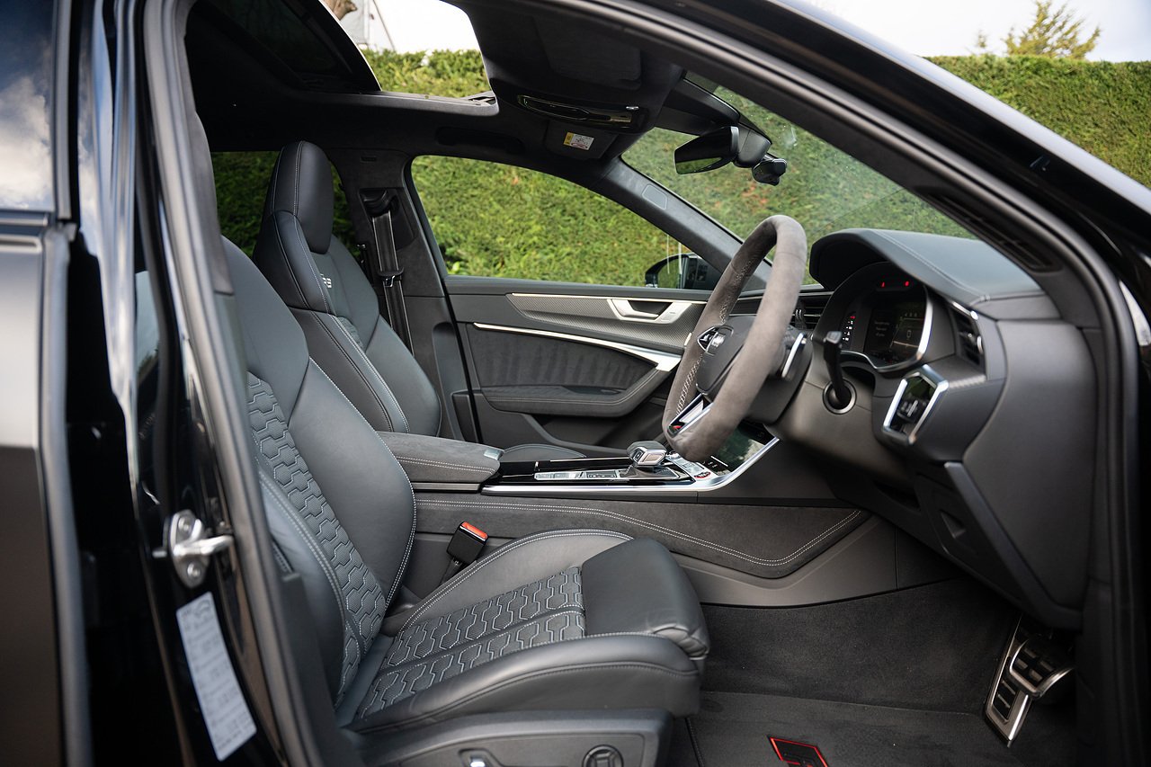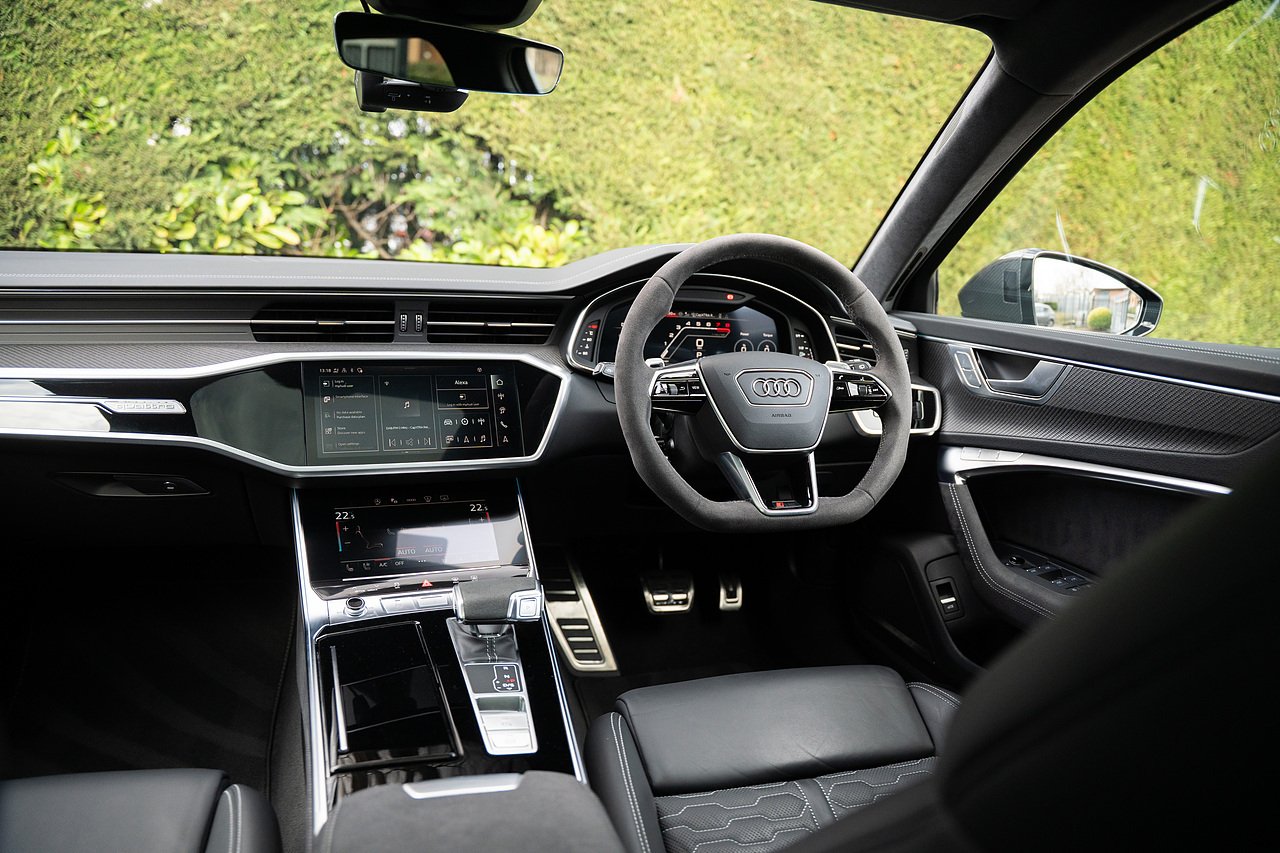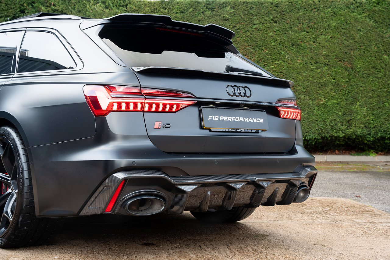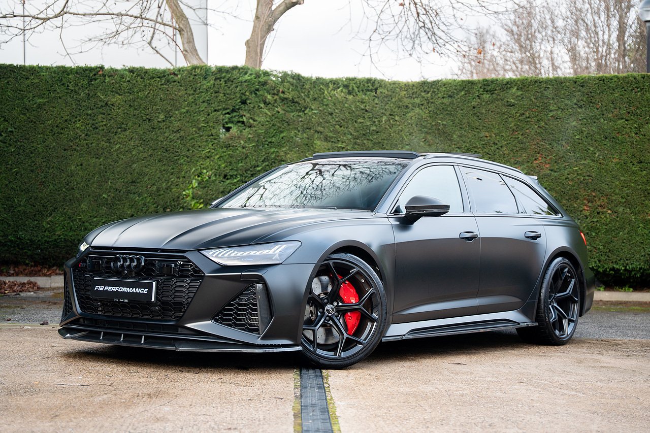 Just arrived into stock, Audi RS6 Performance Carbon Vorsprung with full URBAN carbon fibre kit, in Mythos black with satin PPF. One owner from new, genuine low miles, full Audi history, URBAN kit includes carbon fibre splitter, side skirts, diffuser, and rear spoilers. The car also comes with panoramic glass sliding roof, head up display, heated and cooled seats, heated alcantara steering wheel, 22" Audi Performance alloys in satin black, gloss red calipers, 360 surround camera and parking sensors, night vision, adaptive cruise control, blind spot assist, lane assist, bluetooth connectivity, satellite navigation, Apple Car Play and much more