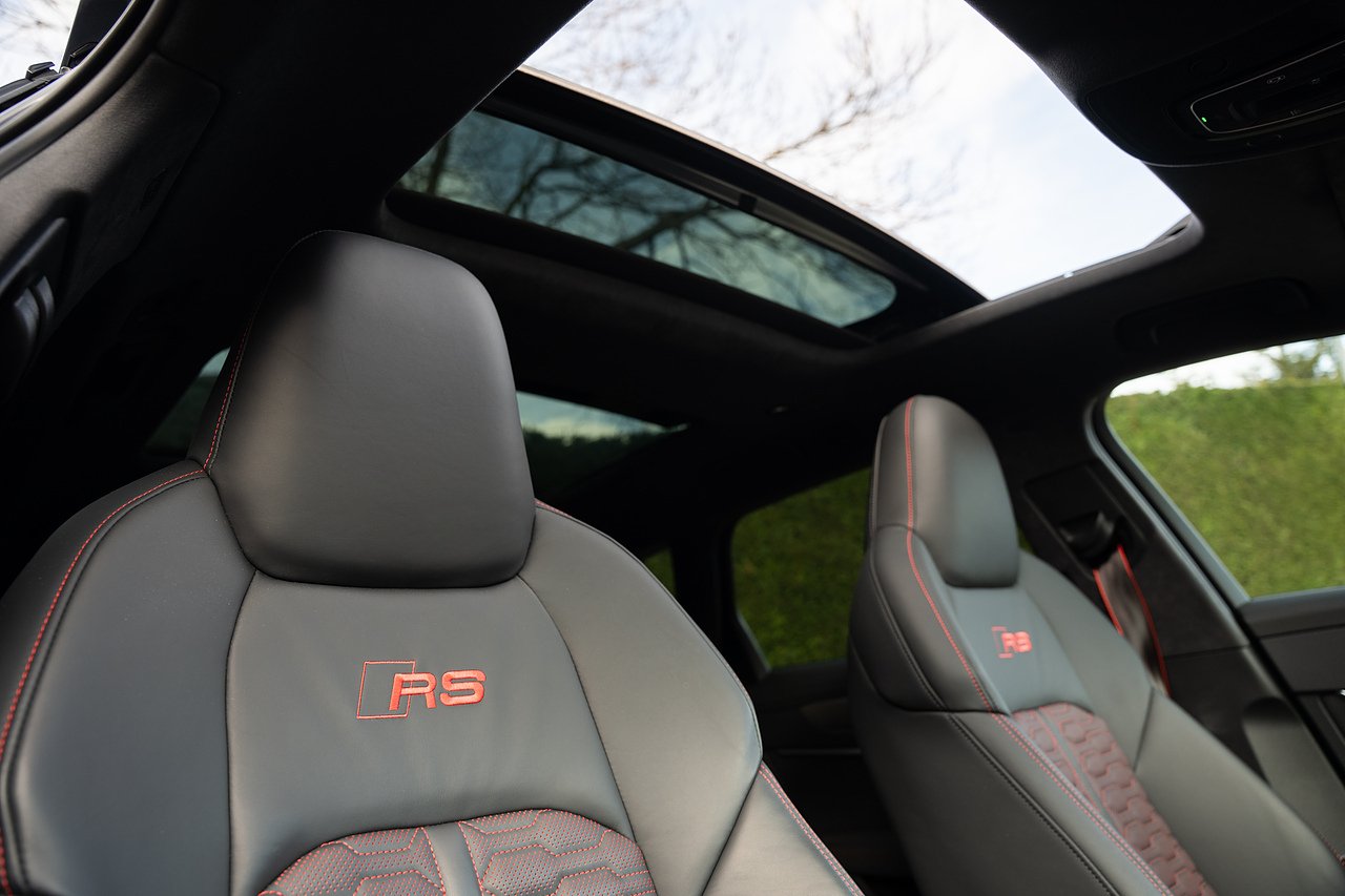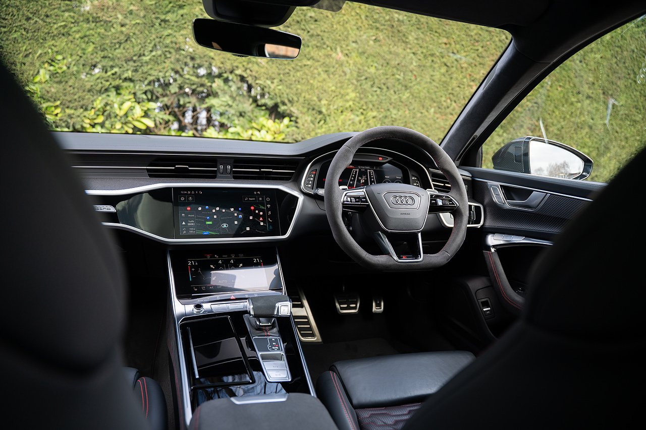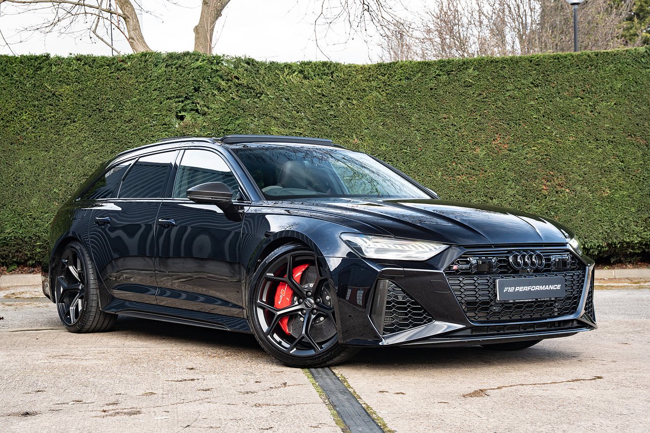 Stunning Audi RS6 Performance Carbon Vorsprung, finished in black metallic paint, with black leather interior. One owner from new - with full Audi service history. Specification includes carbon ceramic brakes, panoramic glass sliding roof, head up display, heated and cooled seats, heated alcantara steering wheel, 22" Audi Performance alloys in satin black, gloss red calipers, 360 surround camera and parking sensors, night vision, adaptive cruise control, blind spot assist, lane assist, bluetooth connectivity, satellite navigation, Apple Car Play and much more