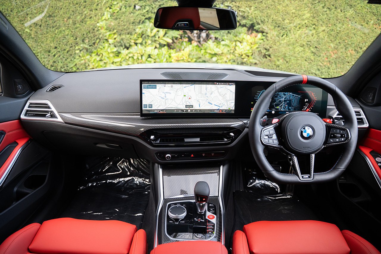 Fantastic BMW M3 Competition xDrive, finished in the highly desireable Brooklyn grey metallic paint, the car presents as new with less than 500 miles recorded. Specification includes technology package, head up display, M carbon fibre interior trim finisher, BMW individual fiona red leather interior, heated steering wheel, high beam assist, lane assist, blind spot assist, cruise control, bluetooth connectivity, Apple Car Play and much more