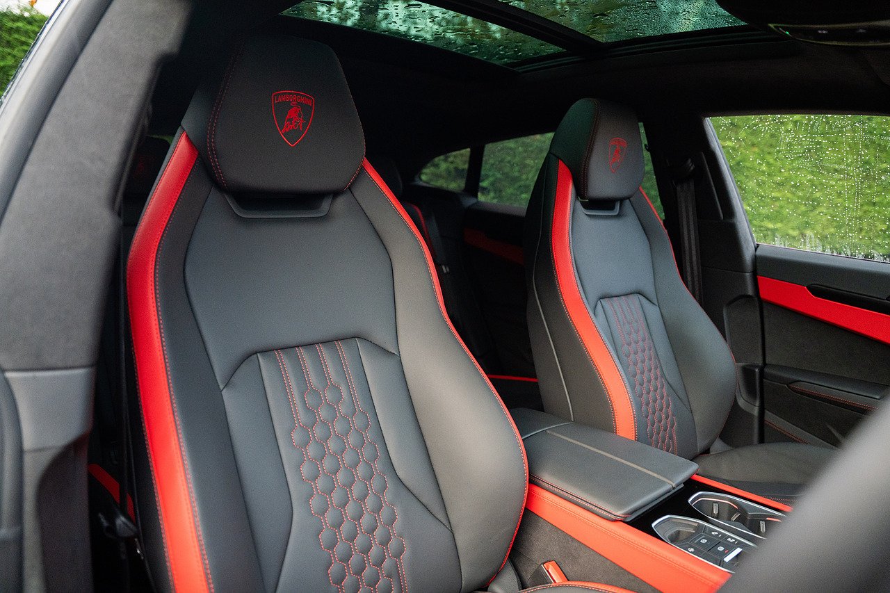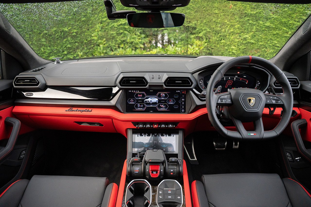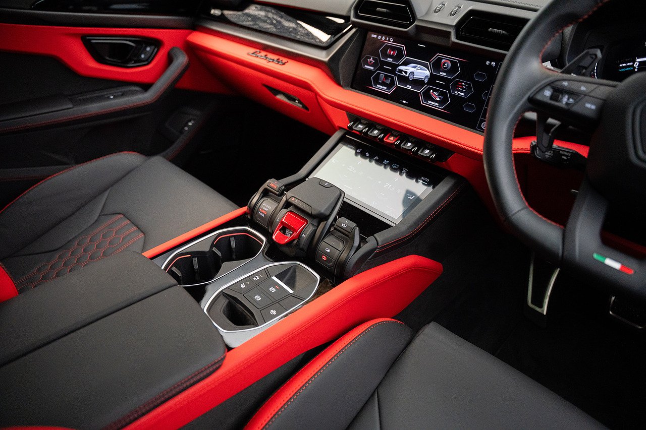 Stunning Lamborghini Urus SE, finished in Nero Helene over black and red contrast leather interior. Full PPF in ‘Wicked Thundercloud’ black metallic with blue and purple fleck, applied by Topaz Detailing. Fantastic specification with a list price of over £270k, this includes panoramic glass sliding roof, Bang & Olufsen advanced 3D audio system, 23" Galanthus alloy wheels with diamond cut finish, full high gloss black style package, performante trim on leather seats, ambient light package, sport heated steering wheel with contrast stitching, gloss red brake calipers, matt black exhaust tailpipes, Lamborghini ANIMA with off road modes, black anodised treatment for aluminium inserts, heated front and rear seats, and much more