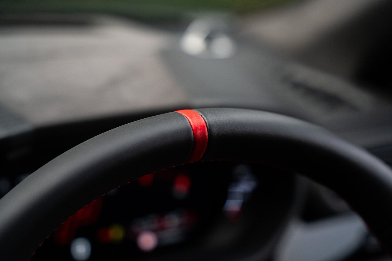 • Sport Heated Steering Wheel Full Leather with Dark Chrome Bezel and Red Marker