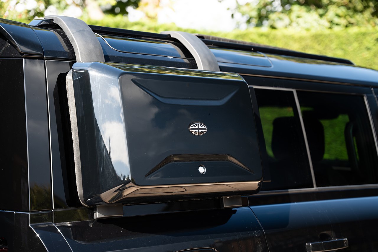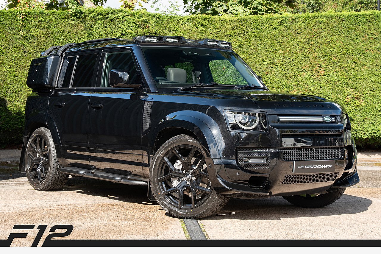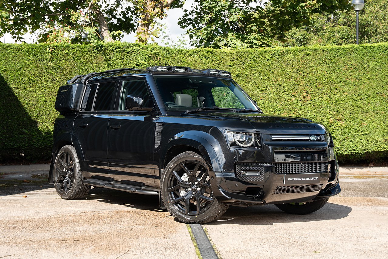 Brand new Land Rover Defender 110 now available, brand new VAT qualifying, finished in Santorini black metallic paint, featuring full Urban style kit including 22" satin black alloy wheels, wider wheel arches, LED roof lights, side storage box, side ladders, spare wheel cover, front bumper scoops, bonnet trims, side steps, mud flaps, rear lip spoiler, and front grill LED light trim. This is ontop of an excellent specification including air suspension pack, detachable towbar, extended black exterior pack, spare wheel lock, cold climate pack with heated seats and heated steering wheel, bluetooth connectivity, satellite navigation, apple car play, and more