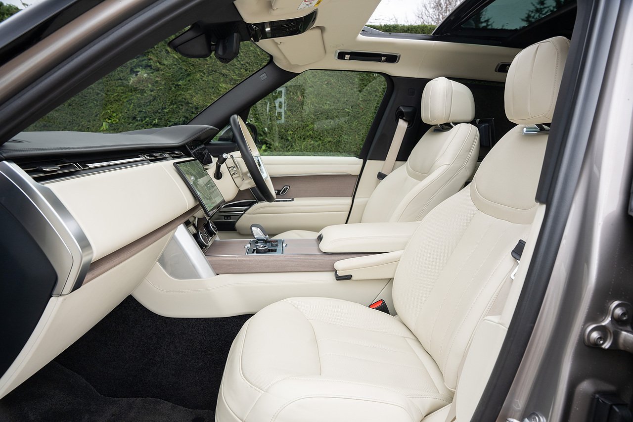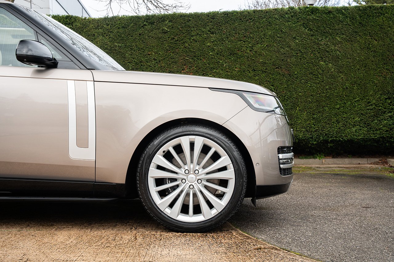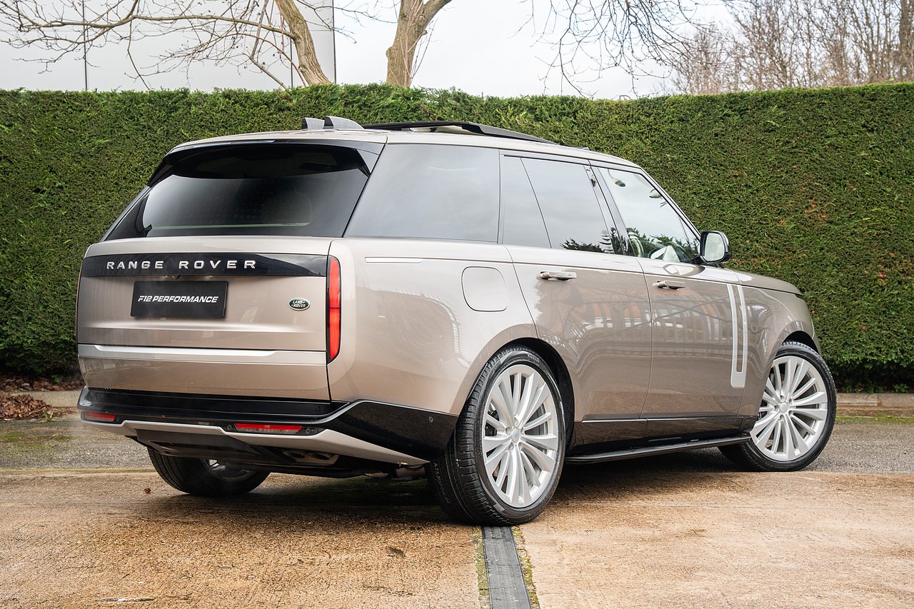 Stunning Range Rover P530 V8 First Edition, finished in Lantau Bronze metallic paint with perlino leather interior, huge spec includes rear entertainment screens, panoramic glass sliding roof, head up display, heated and cooled front massage seats, heated steering wheel, adaptive cruise control, solar attenuating windscreen, blind spot assist, lane assist, 360 cameras and parking sensors, Apple Car Play, satellite navigation and more