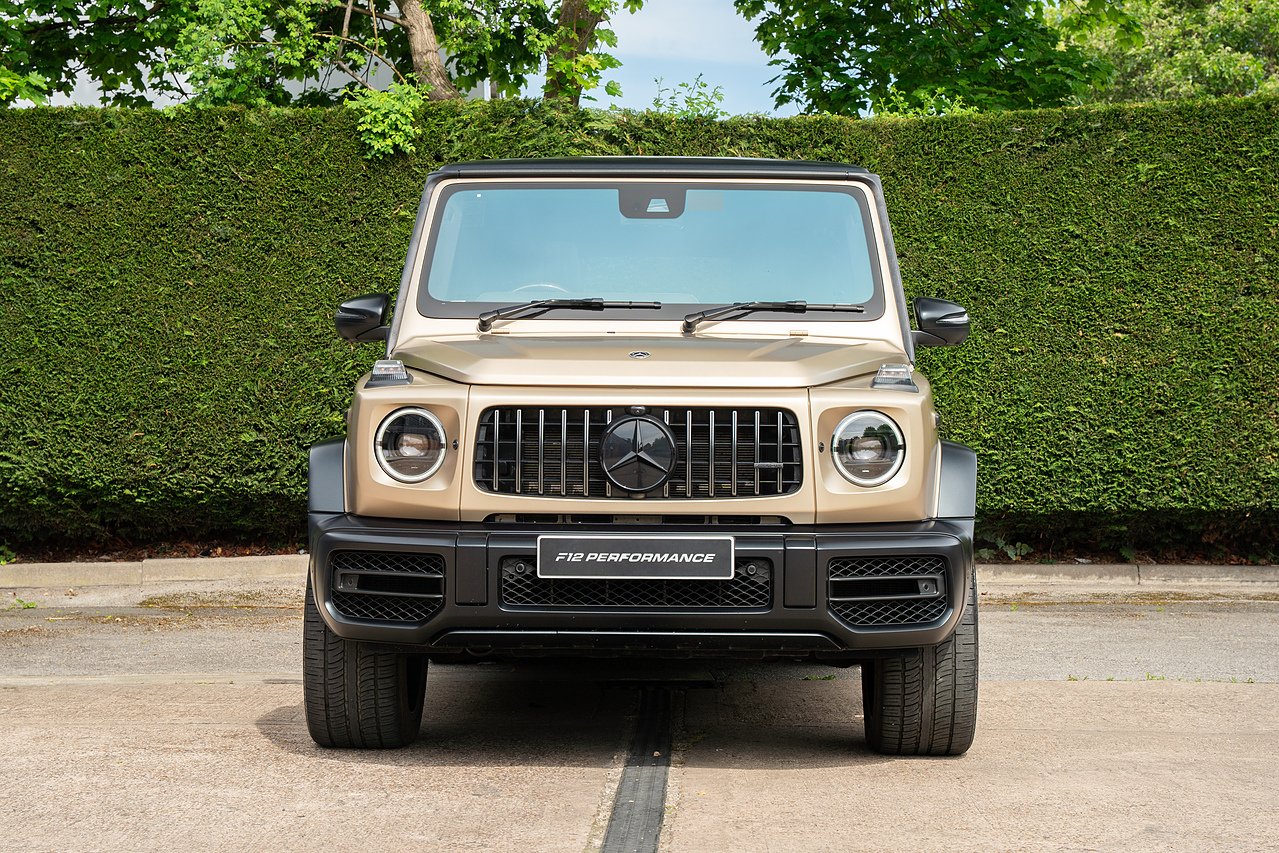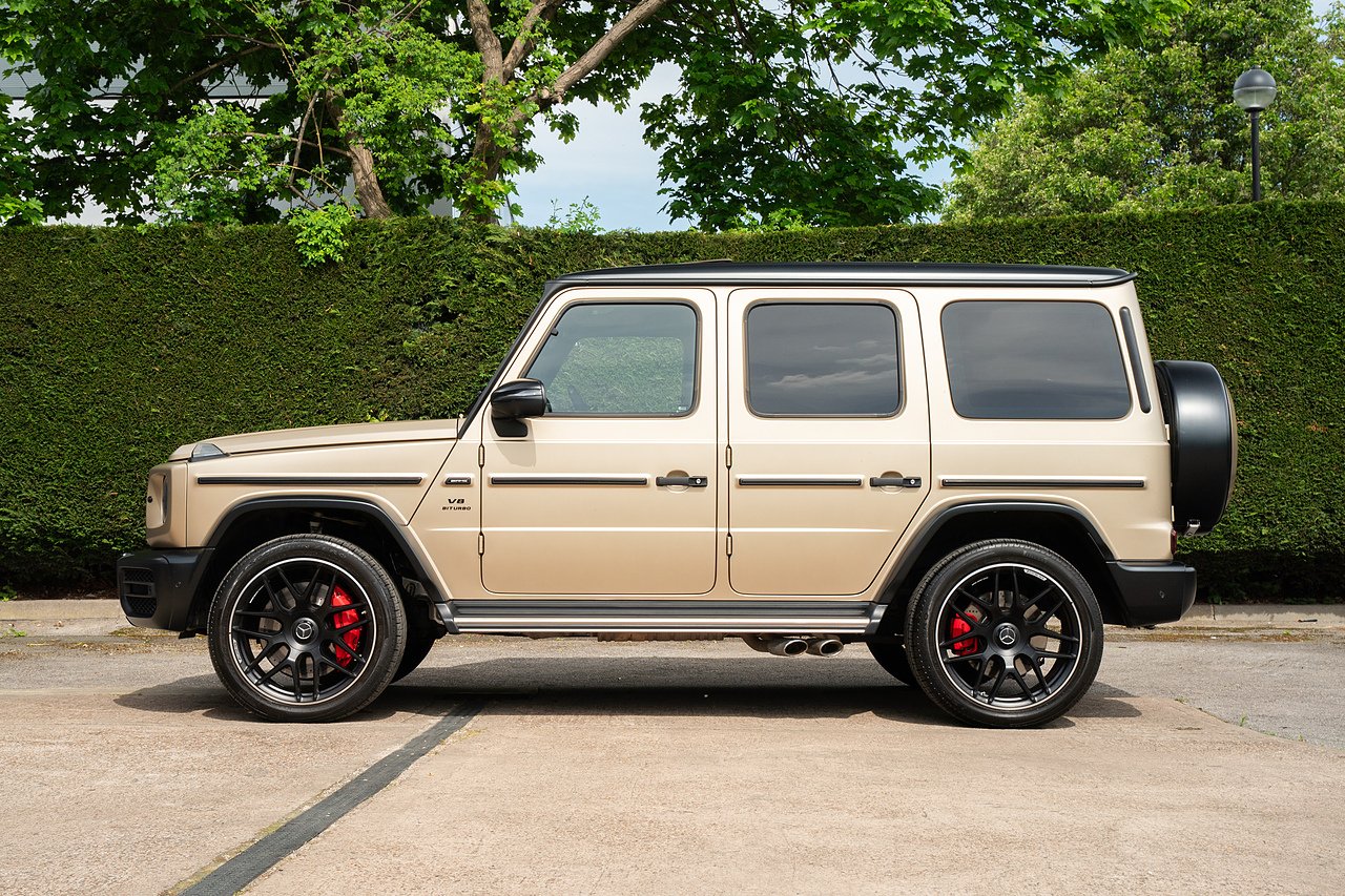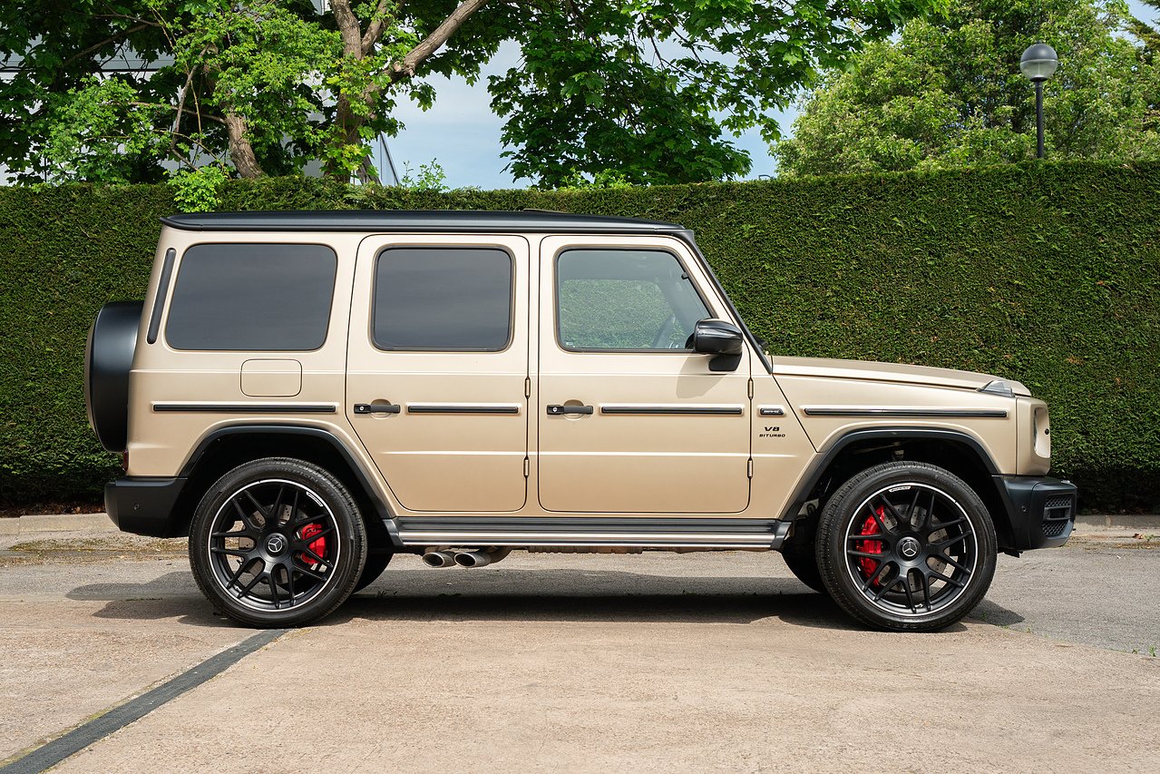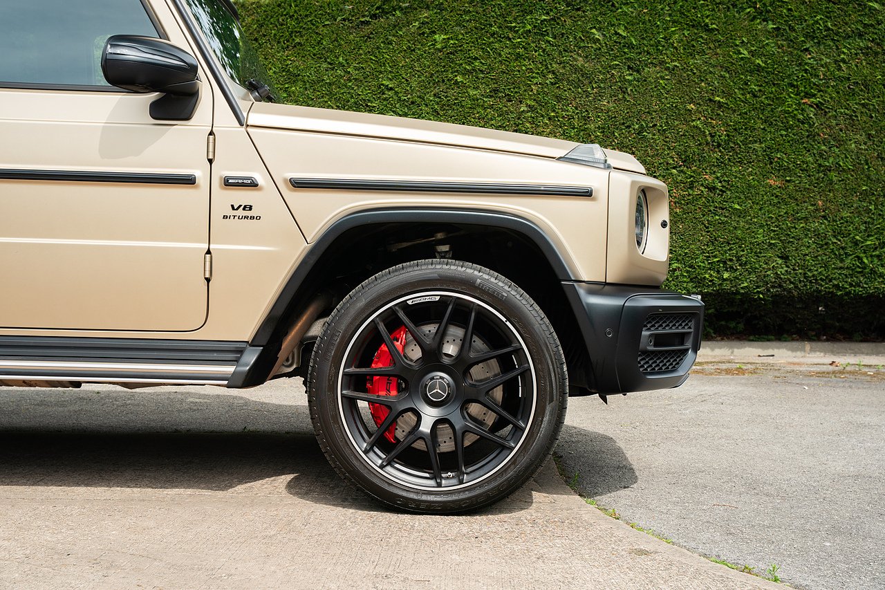 Stunning Mercedes-Benz G63 Magno Edition, finished in magno gold paint with black exclusive leather. Spec includes carbon fibre steering wheel, carbon fibre interior trim, heated and cooled massage seats, 22" forged satin black alloys, sunroof, 360 degree parking cameras and sensors, adaptive cruise control, blind spot assist, privacy glass, switchable AMG exhaust, gloss red AMG calipers, bluetooth connectivity, satellite navigation and more