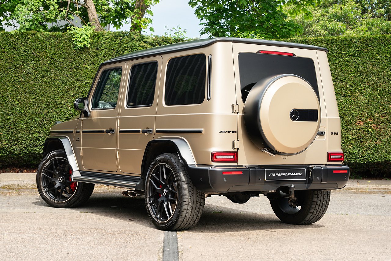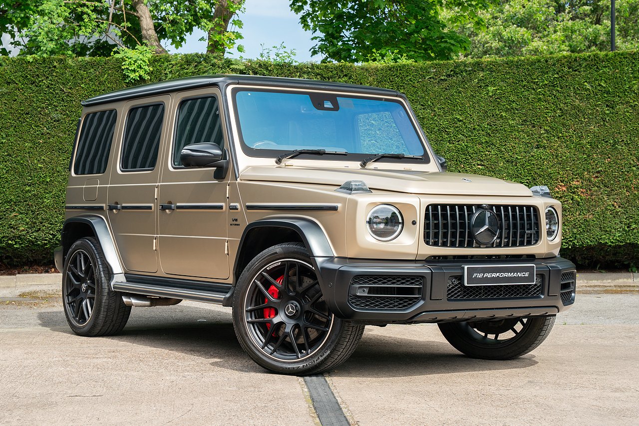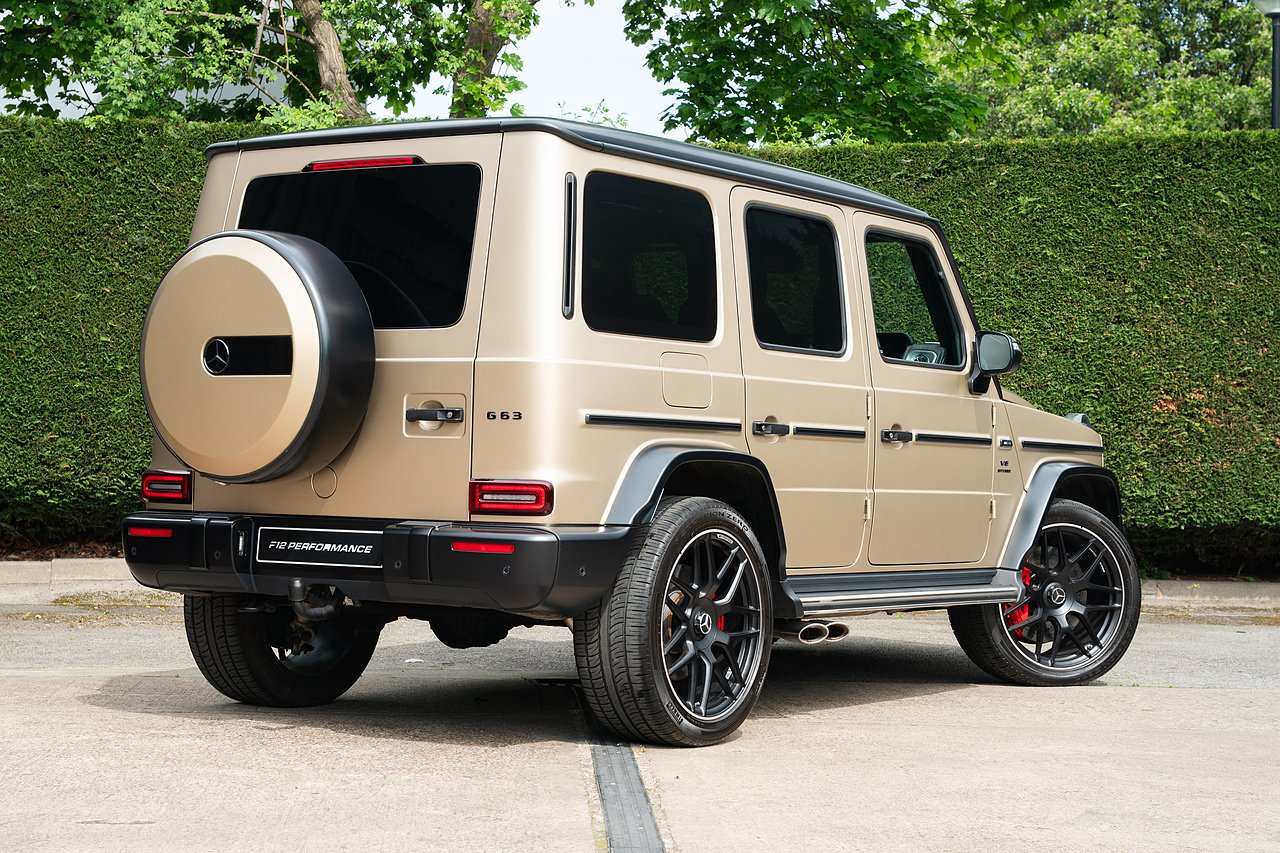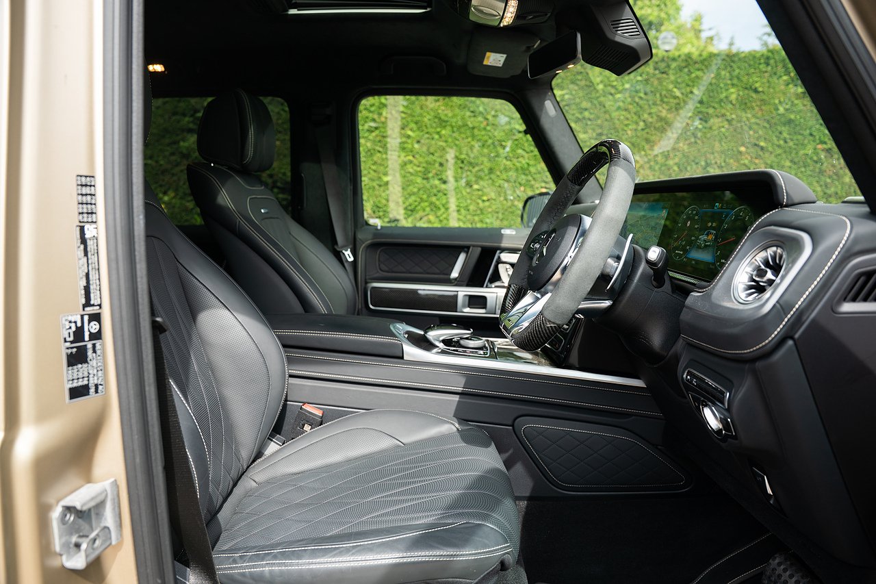 Stunning Mercedes-Benz G63 Magno Edition, finished in magno gold paint with black exclusive leather. Spec includes carbon fibre steering wheel, carbon fibre interior trim, heated and cooled massage seats, 22" forged satin black alloys, sunroof, 360 degree parking cameras and sensors, adaptive cruise control, blind spot assist, privacy glass, switchable AMG exhaust, gloss red AMG calipers, bluetooth connectivity, satellite navigation and more